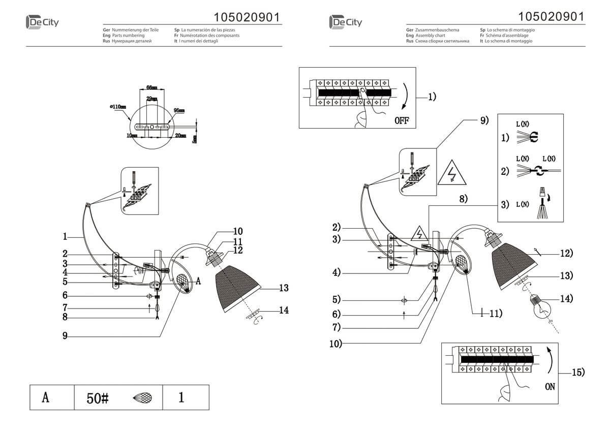 Направление абажуров/плафонов | Вниз |