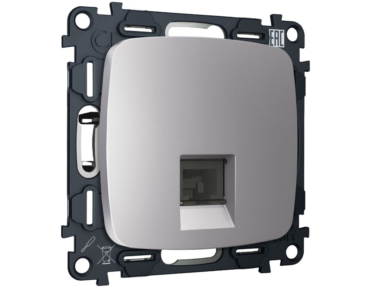 Комплект механизма компьютерной розетки Ambrella Volt RJ-45 (8P8C) CAT6A экранированной с автоматической защитной шторкой OMEGA MO512005 Сталь матовый QUANT (OP5120, VM185)✖Добавить к сравнениюПерейти к сравнению
