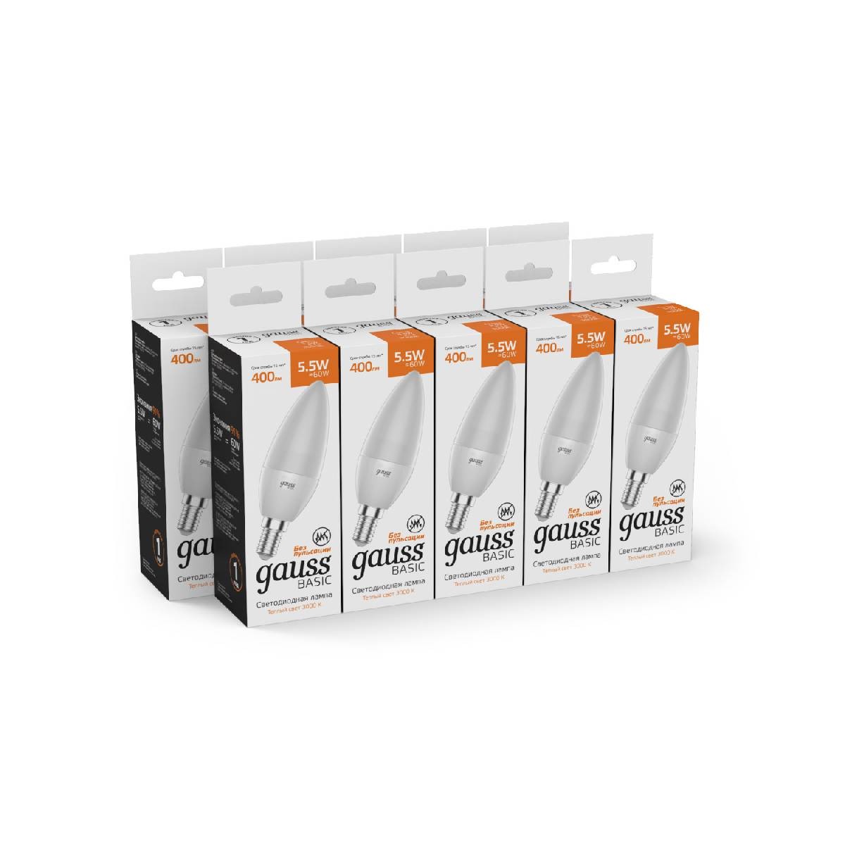 Лампа светодиодная Gauss E14 5,5W 3000К свеча матовая 1033116✖Добавить к сравнениюПерейти к сравнению