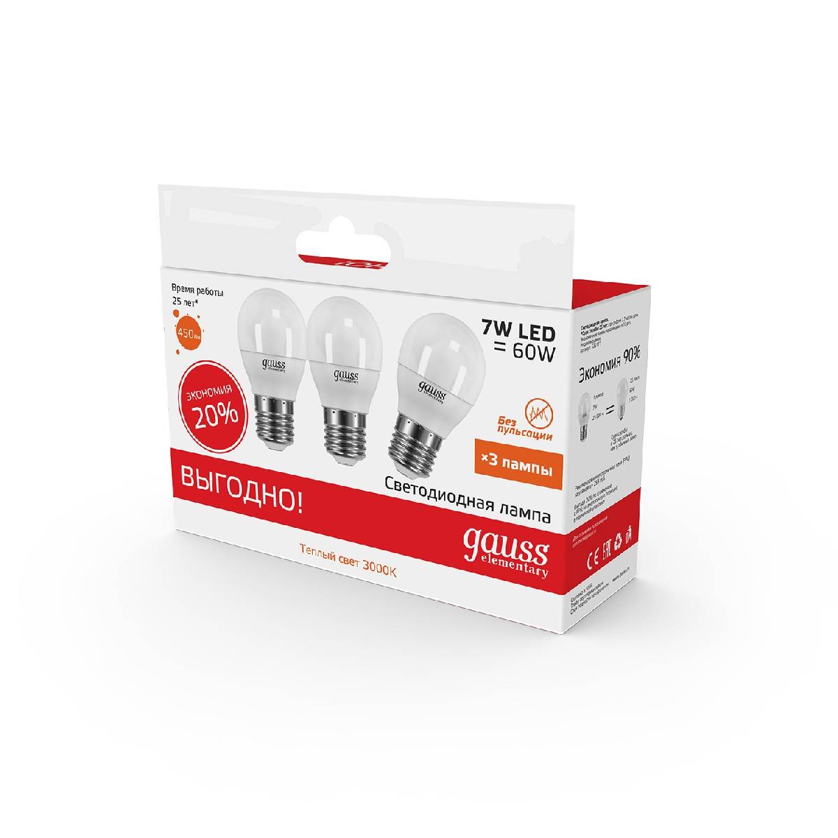 Световой поток, лм | 450 |