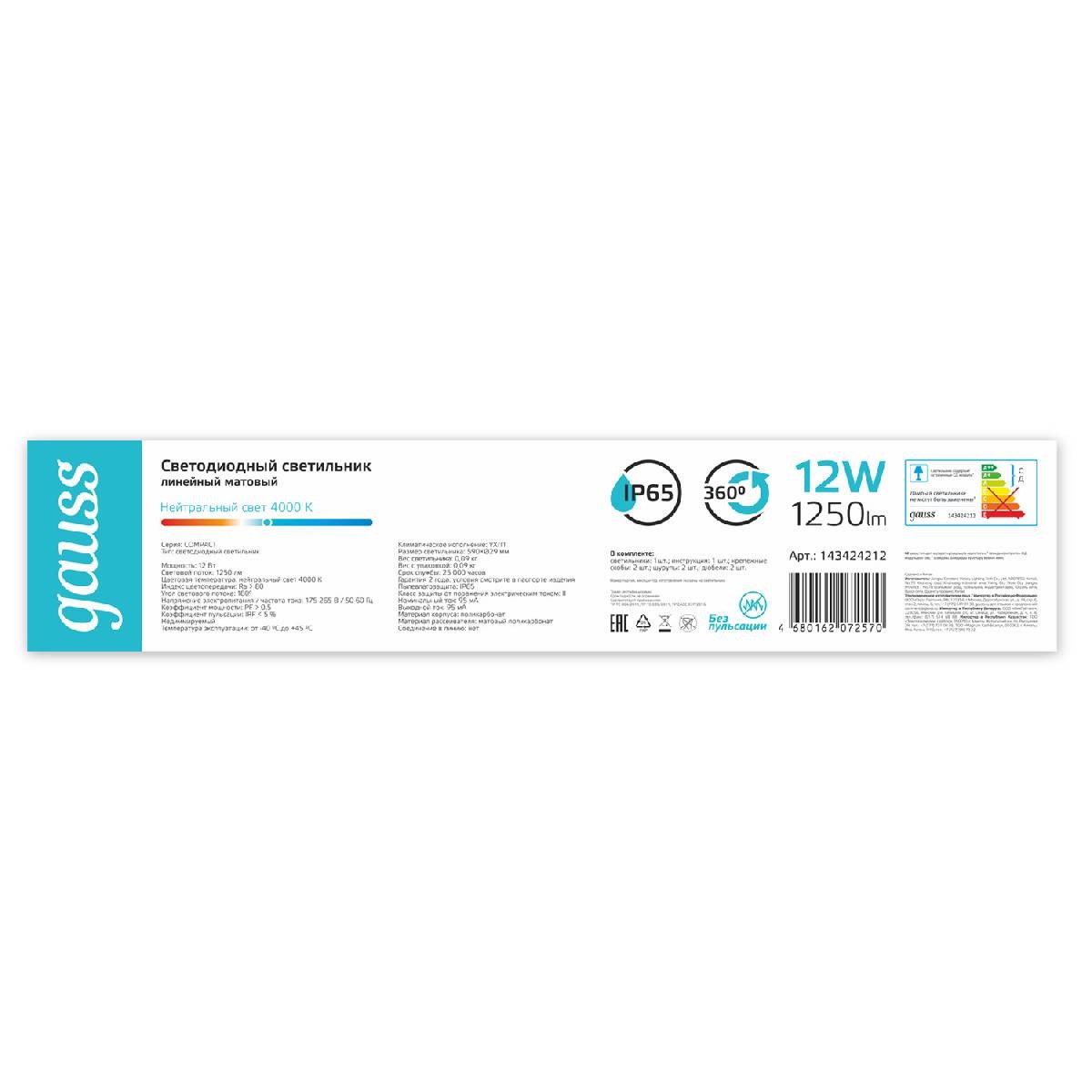 Линейный потолочный светильник Gauss Compact 143424212Добавить к сравнениюПерейти к сравнению