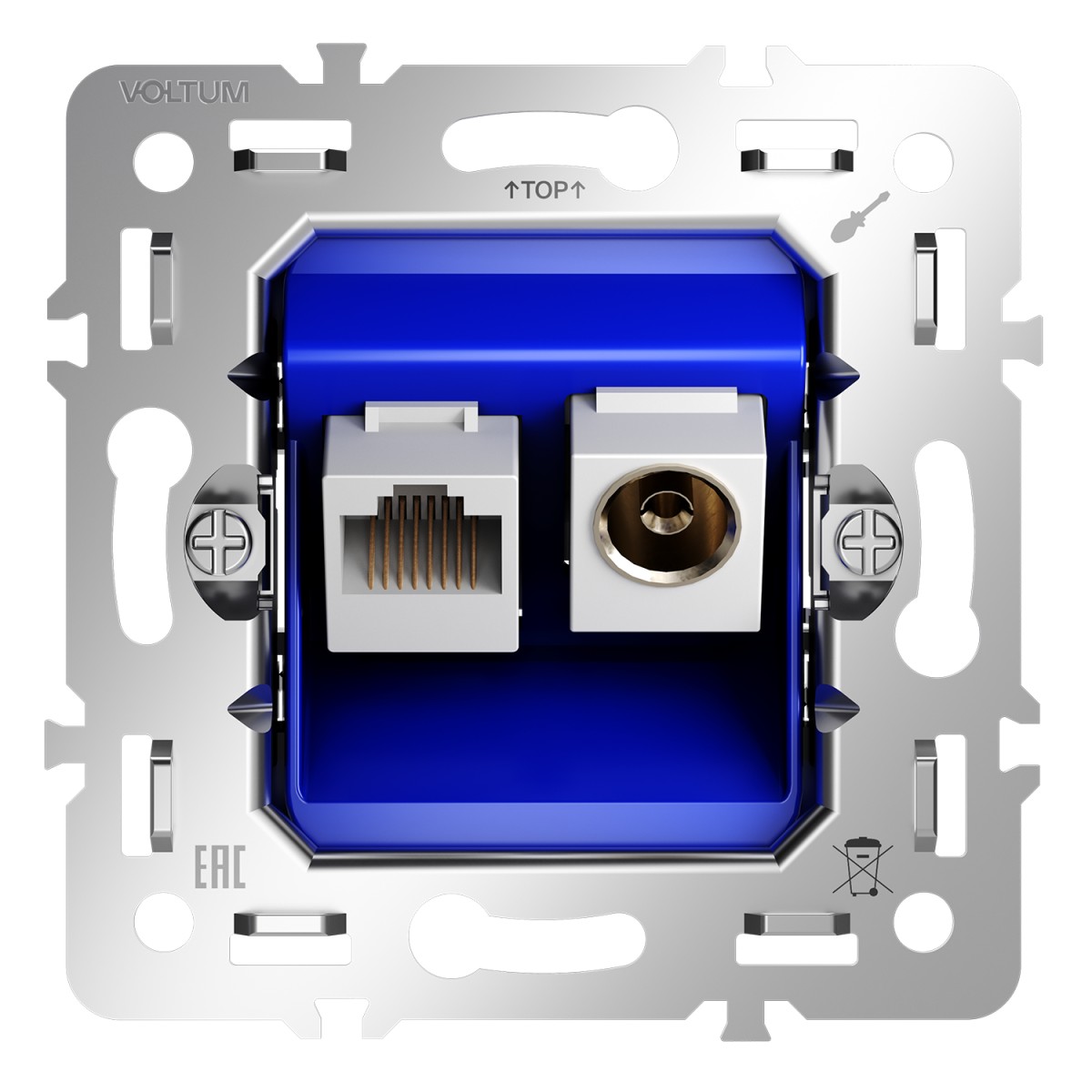 Механизм розетки TV+RJ45 кат. 6 Voltum S70 VLS0607MДобавить к сравнениюПерейти к сравнению