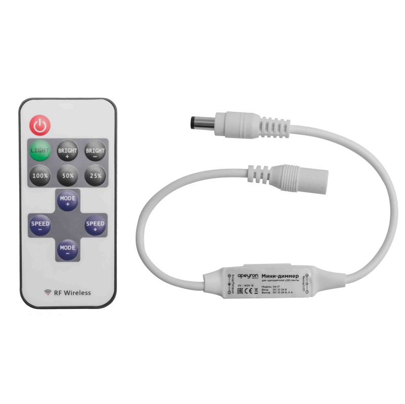 Мини-диммер для светодиодной ленты Apeyron 12В 72Вт RF пульт 04-10✖Добавить к сравнениюПерейти к сравнению