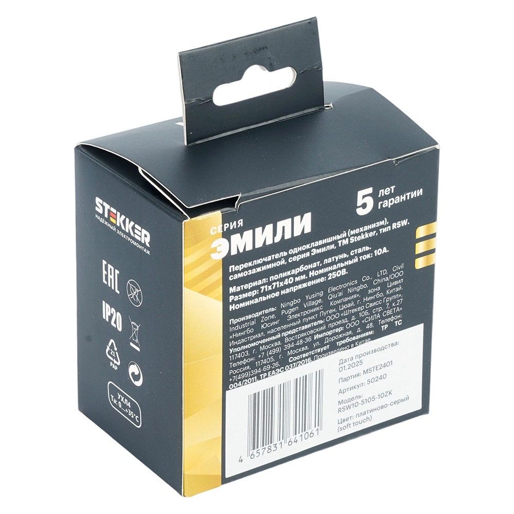 Переключатель 1-клавишный (механизм) СЗК Stekker Эмили 250В 10A RSW10-5105-10ZK платиново-серый soft touch 50240✖Добавить к сравнениюПерейти к сравнению