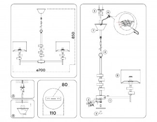 Направление абажуров/плафонов | Вниз |
