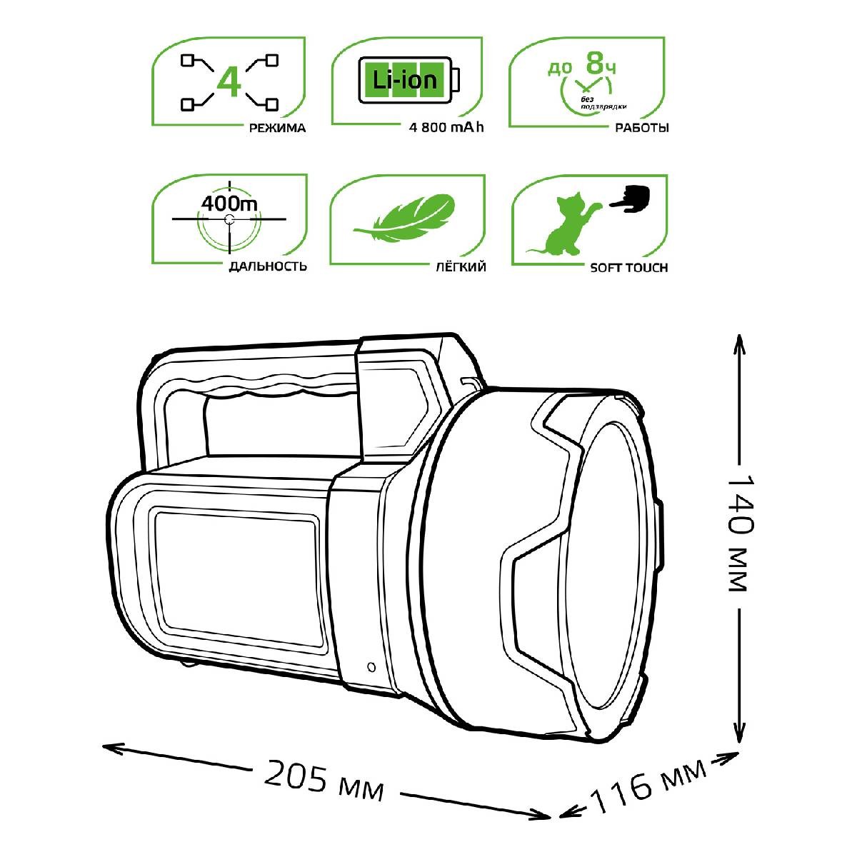 Прожекторный светодиодный фонарь Gauss аккумуляторный 205х140 400 лм GF602✖Добавить к сравнениюПерейти к сравнению