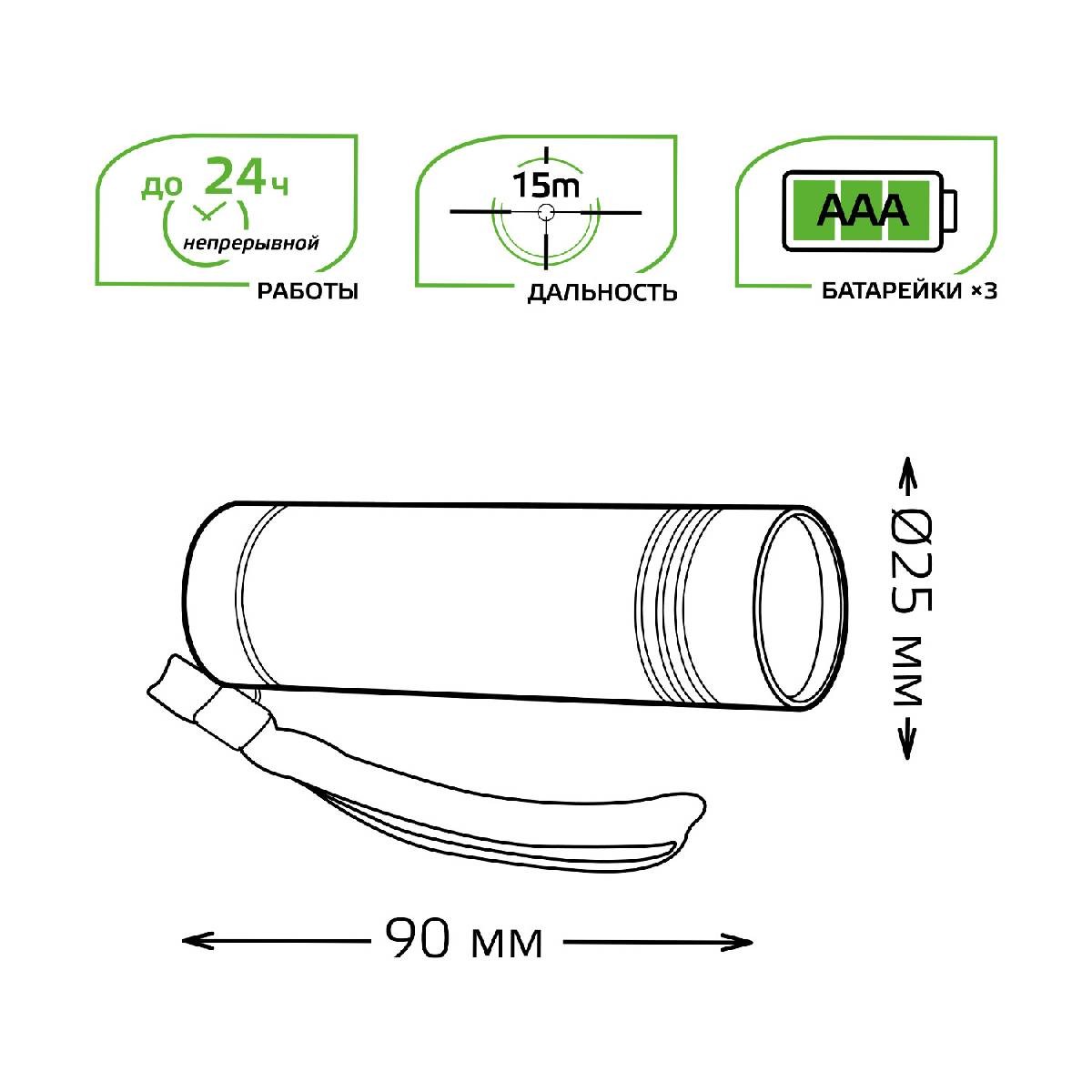 Ручной светодиодный фонарь Gauss от батареек 90х25 120 лм GF107✖Добавить к сравнениюПерейти к сравнению
