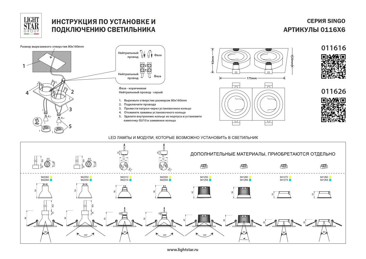 Встраиваемый светильник MR16 Lightstar Singo Base 011616Добавить к сравнениюПерейти к сравнению