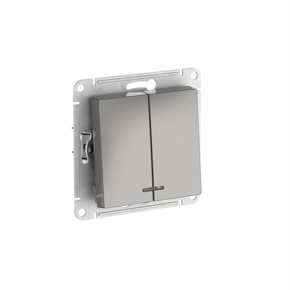 Выключатель 2-клавишный с подсвет.,сх.5а, 10АХ, быстрозажим. клем. Systeme Electric AtlasDesign Сталь ATN000953S✖Добавить к сравнениюПерейти к сравнению