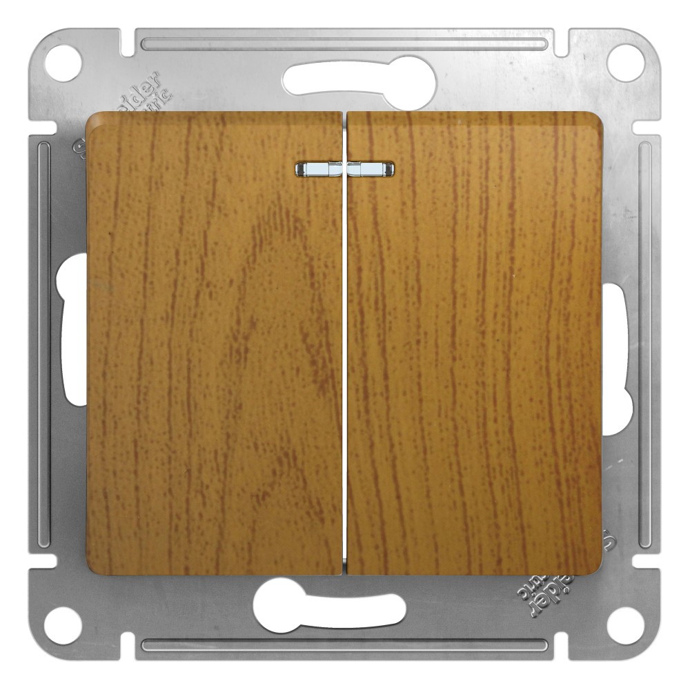 Выключатель 2-клавишный с подсветкой, сх.5а Systeme Electric Glossa Дерево Дуб GSL000553✖Добавить к сравнениюПерейти к сравнению