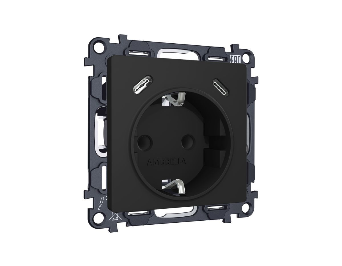 Комплект механизма электрической розетки 2USB С+C 20W с/з на винтовых зажимах 16A-250V Alfa Черный матовый Quant Ambrella Volt MA810510 (AP8105, VM165)Добавить к сравнениюПерейти к сравнению