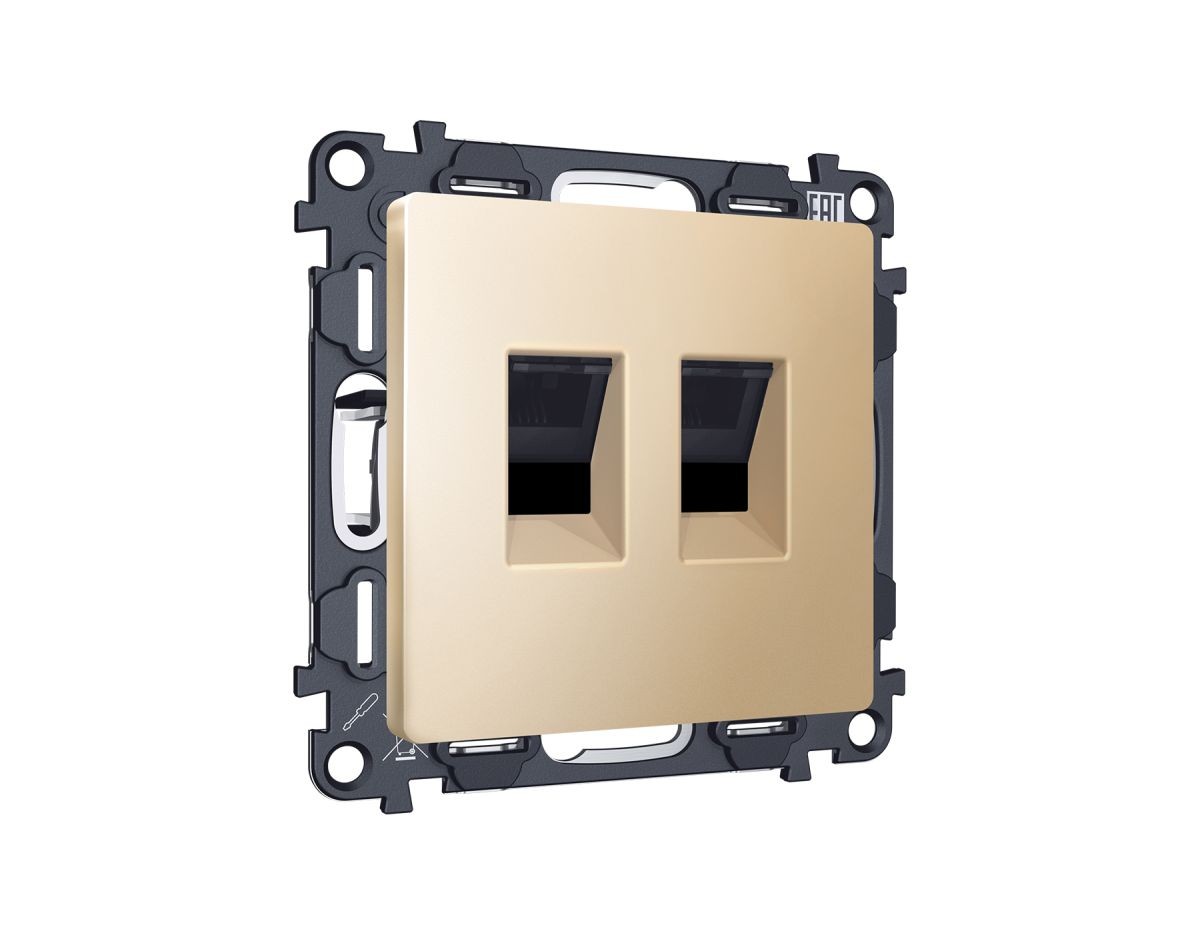 Комплект механизма компьютерной двойной розетки RJ-45 Ambrella Volt MA612110 (8P8C) CAT6 с автоматической защитной шторкой Alfa Шампань Quant✖Добавить к сравнениюПерейти к сравнению
