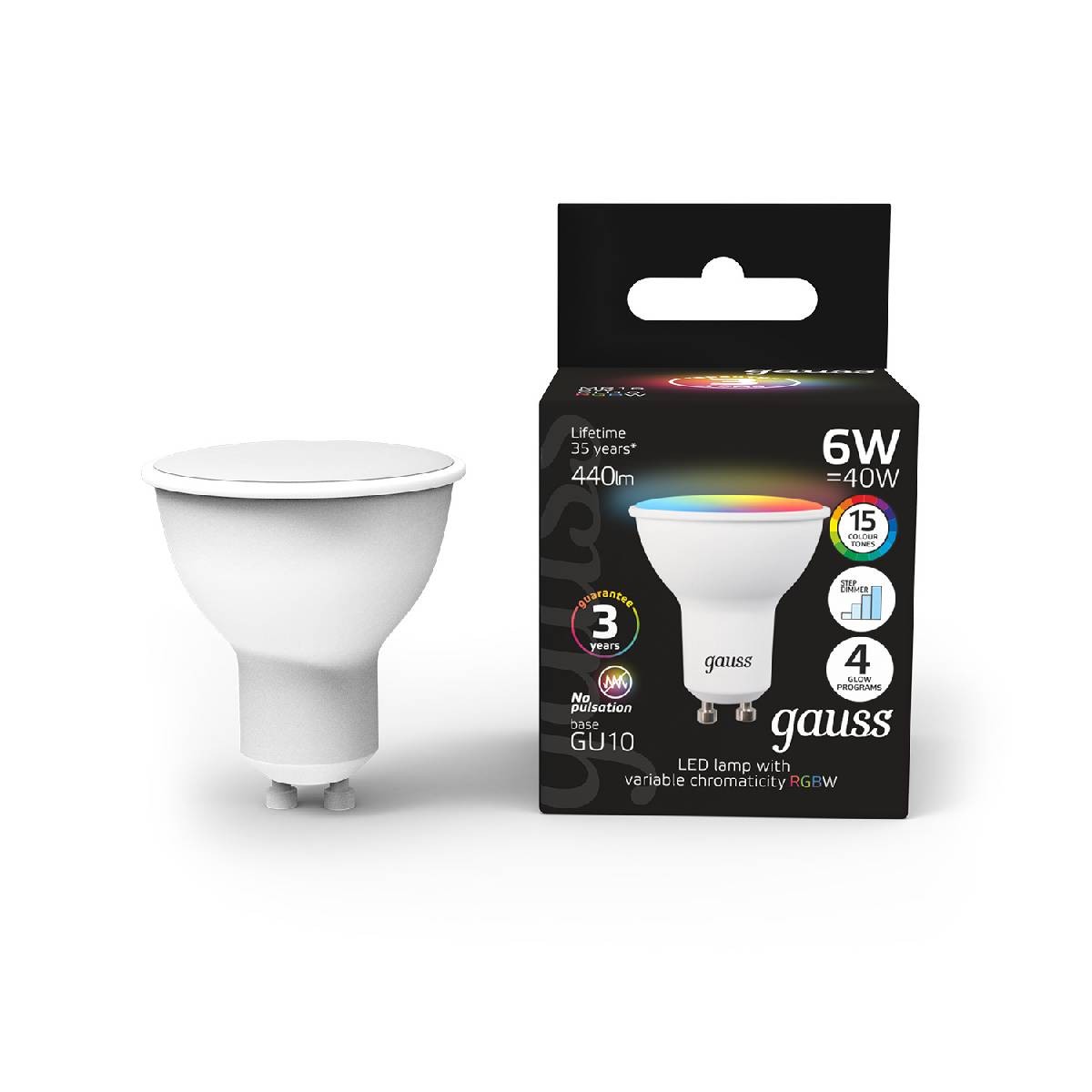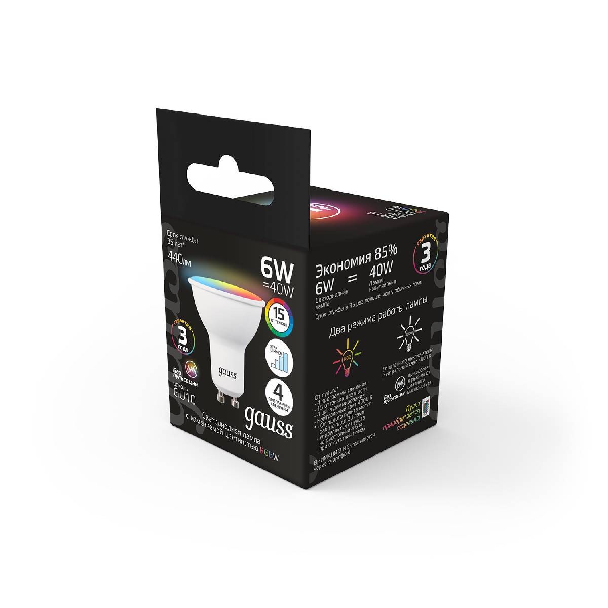 Лампа светодиодная диммируемая Gauss GU10 6W RGBW рефлектор матовый 101106406✖Добавить к сравнениюПерейти к сравнению