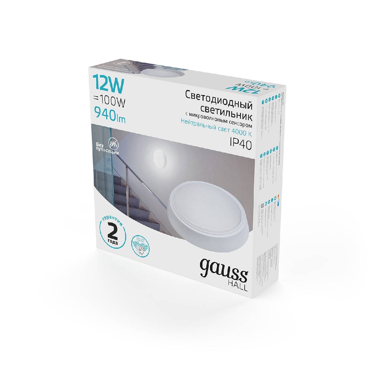Настенно-потолочный светодиодный светильник Gauss Hall 193411212-S✖Добавить к сравнениюПерейти к сравнению