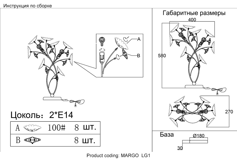 Количество плафонов/абажуров | 2 |