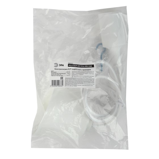 Патрон ЭРА Е27 с подвесом пластиковый PTR/P-E27-PLA-WH-CAB Б0048038✖Добавить к сравнениюПерейти к сравнению