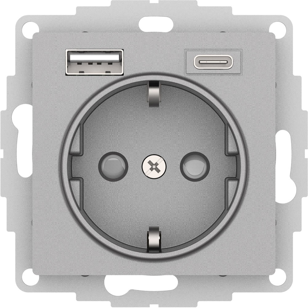 Розетка 16А с USB A+C (5В/2,4А/3 А, 2х5В/1,5А), Systeme Electric AtlasDesign Алюминий ATN000332✖Добавить к сравнениюПерейти к сравнению
