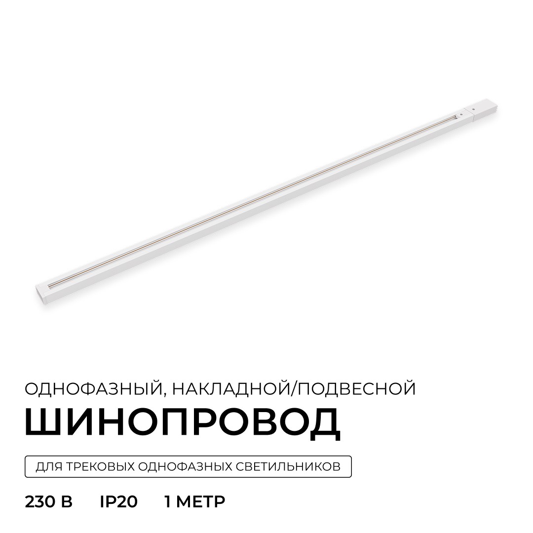 Шинопровод однофазный накладной/подвесной Apeyron в комплекте крепёж, токоввод, заглушка R45-05✖Добавить к сравнениюПерейти к сравнению
