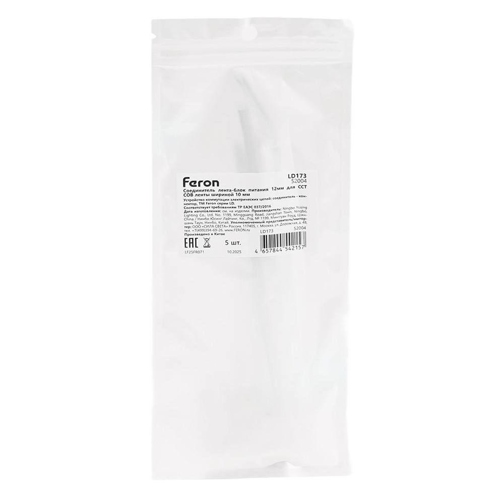 Соединитель лента-блок питания 10мм для CCT COB ленты шириной 8 мм Feron LD173 52004✖Добавить к сравнениюПерейти к сравнению