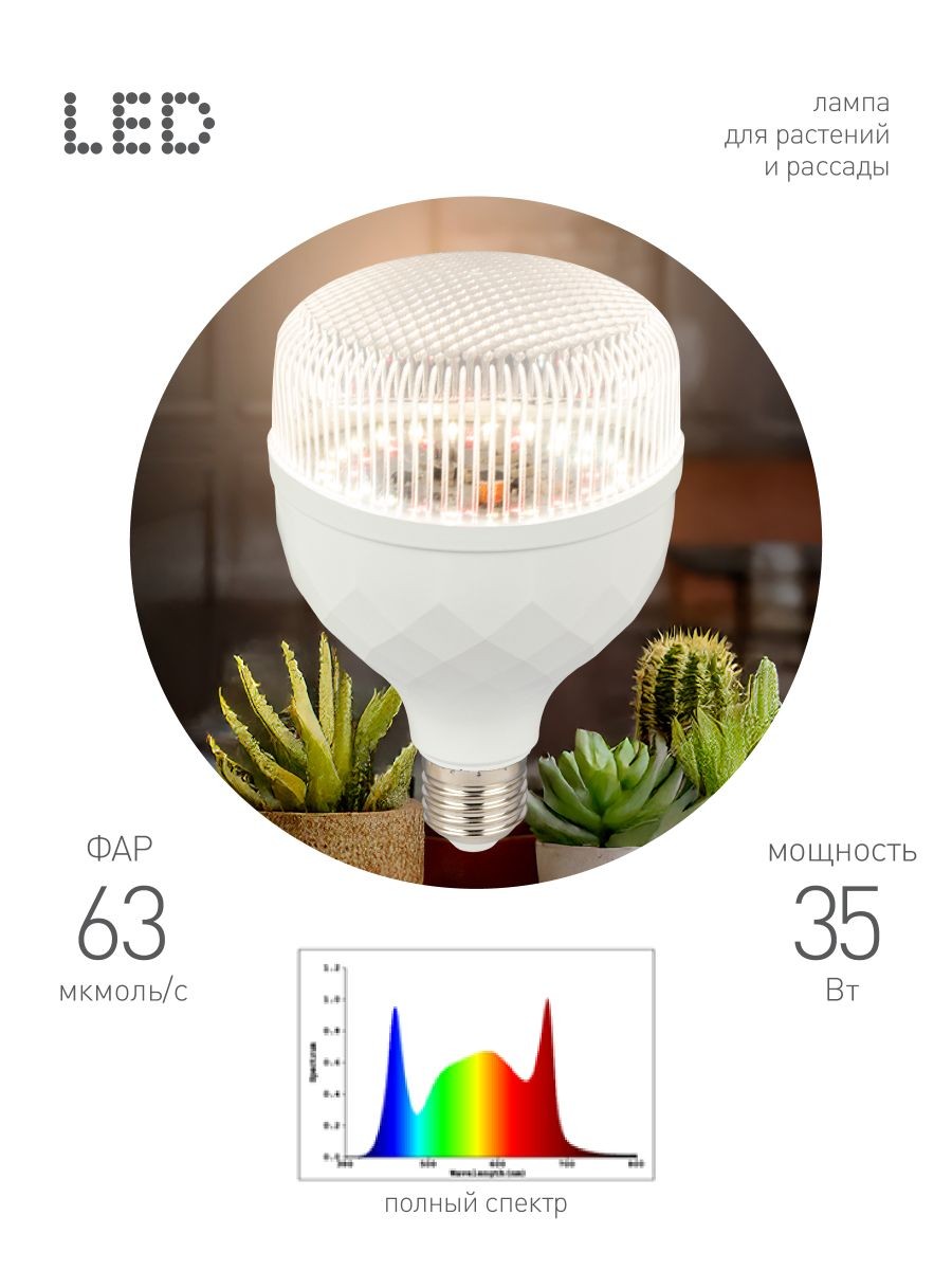 Светодиодная фитолампа для растений Эра ФИТО-35W-PFR-E27-GR Б0064576✖Добавить к сравнениюПерейти к сравнению