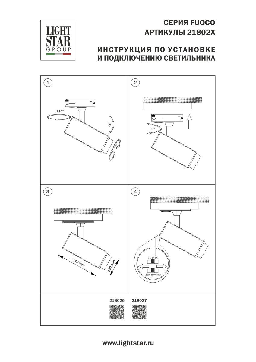 Трековый однофазный профессиональный светильник Lightstar Fuoco P+CCT 218027✖Добавить к сравнениюПерейти к сравнению
