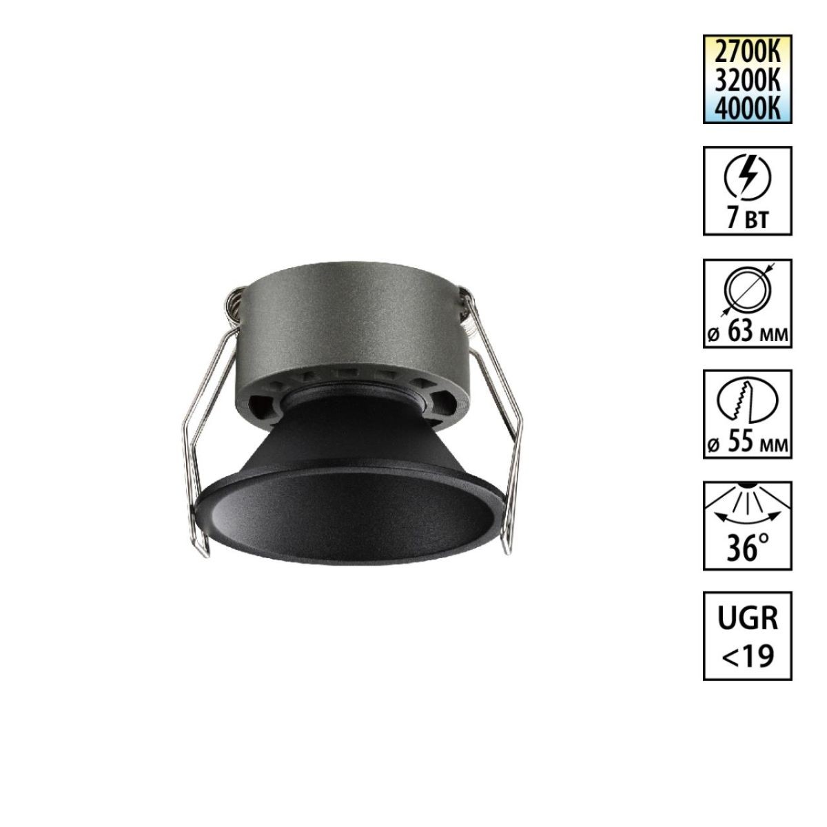 Встраиваемый светильник с переключателем цветовой температуры и угла рассеивания Novotech Wir Nova 359849✖Добавить к сравнениюПерейти к сравнению
