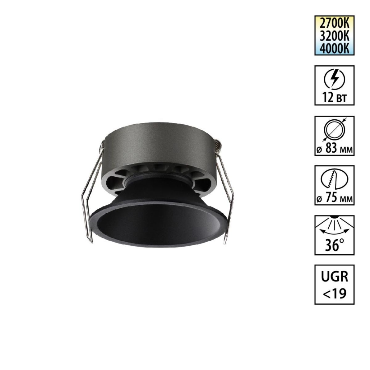 Встраиваемый светильник с переключателем цветовой температуры и угла рассеивания Novotech Wir Nova 359852✖Добавить к сравнениюПерейти к сравнению