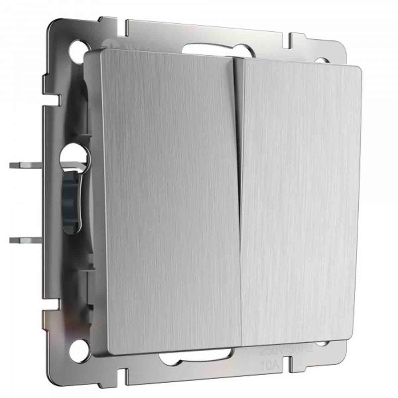 Выключатель двухклавишный проходной Werkel (cеребряный рифленый) W1122009 4690389159626✖Добавить к сравнениюПерейти к сравнению